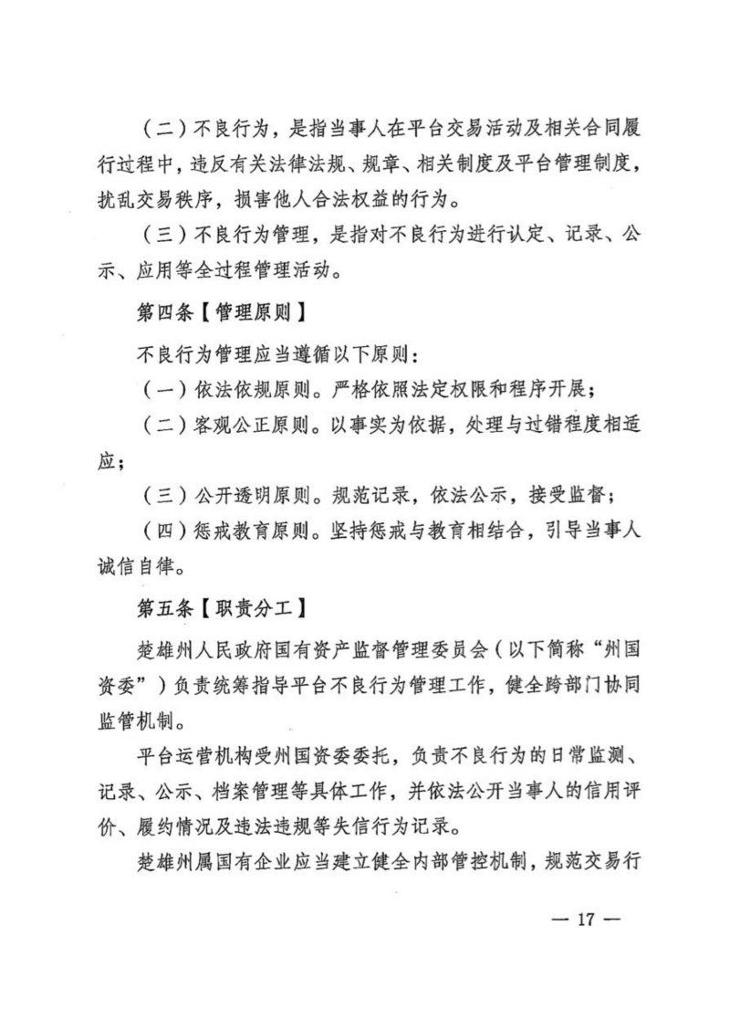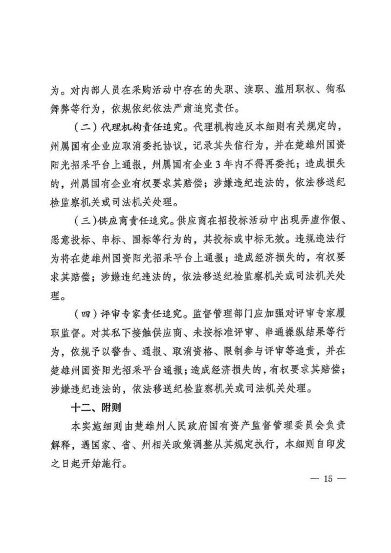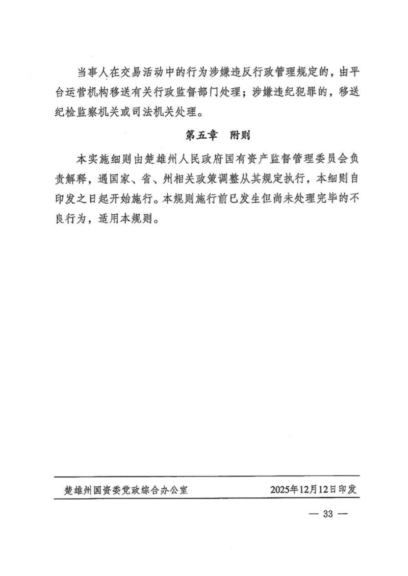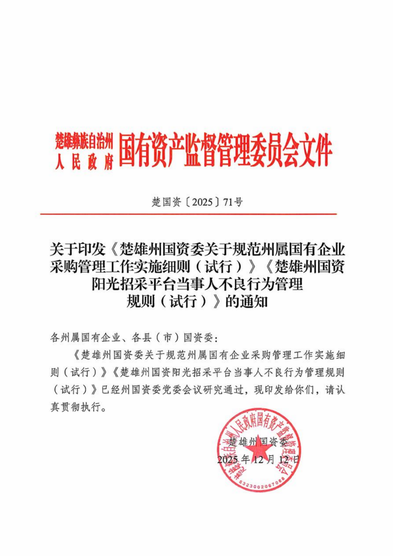 楚国资【2025】71号关于印发《楚雄州国资委关于规范州属国有企业采购管理工作实施细则(试行)》《楚雄州国资阳光招采平台当事人不良行为管理规则(试行)》的通知.pdf