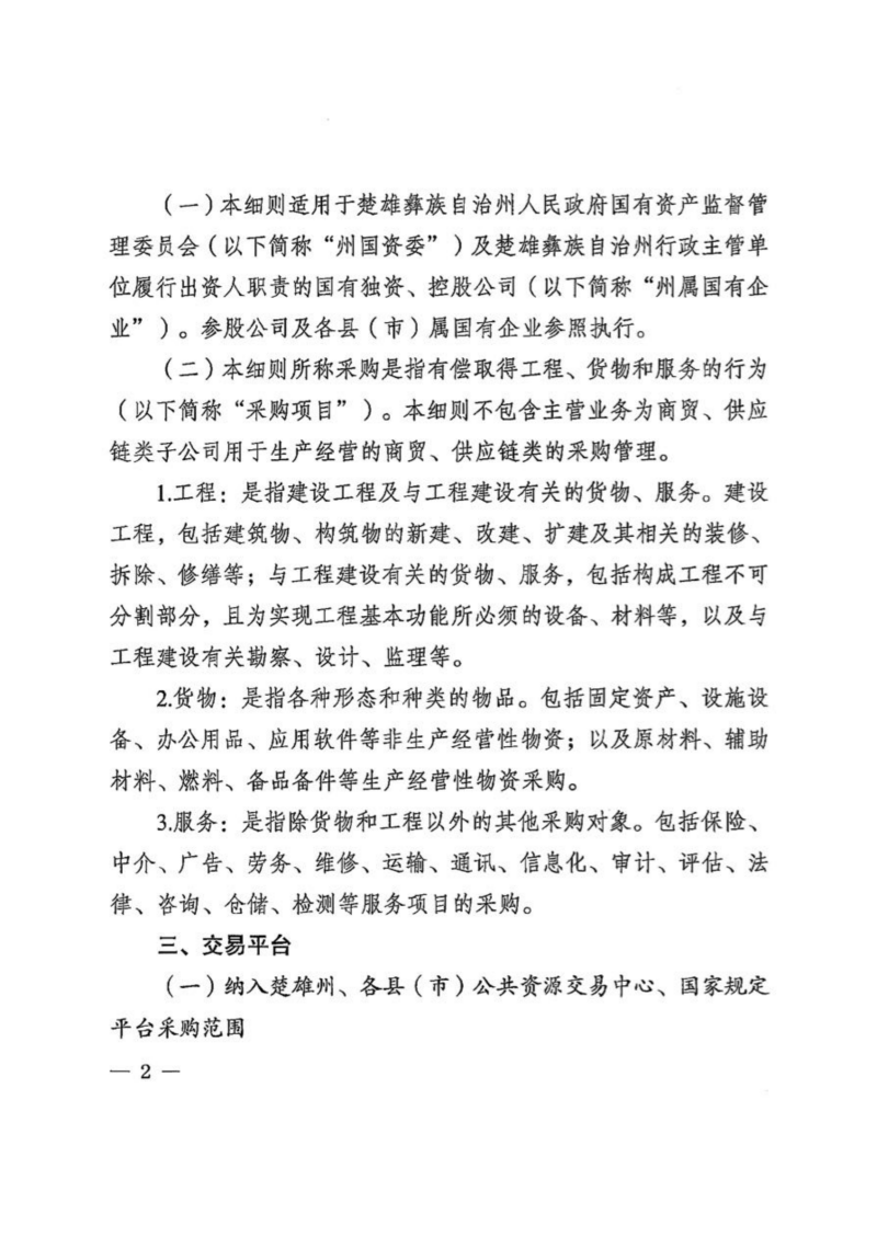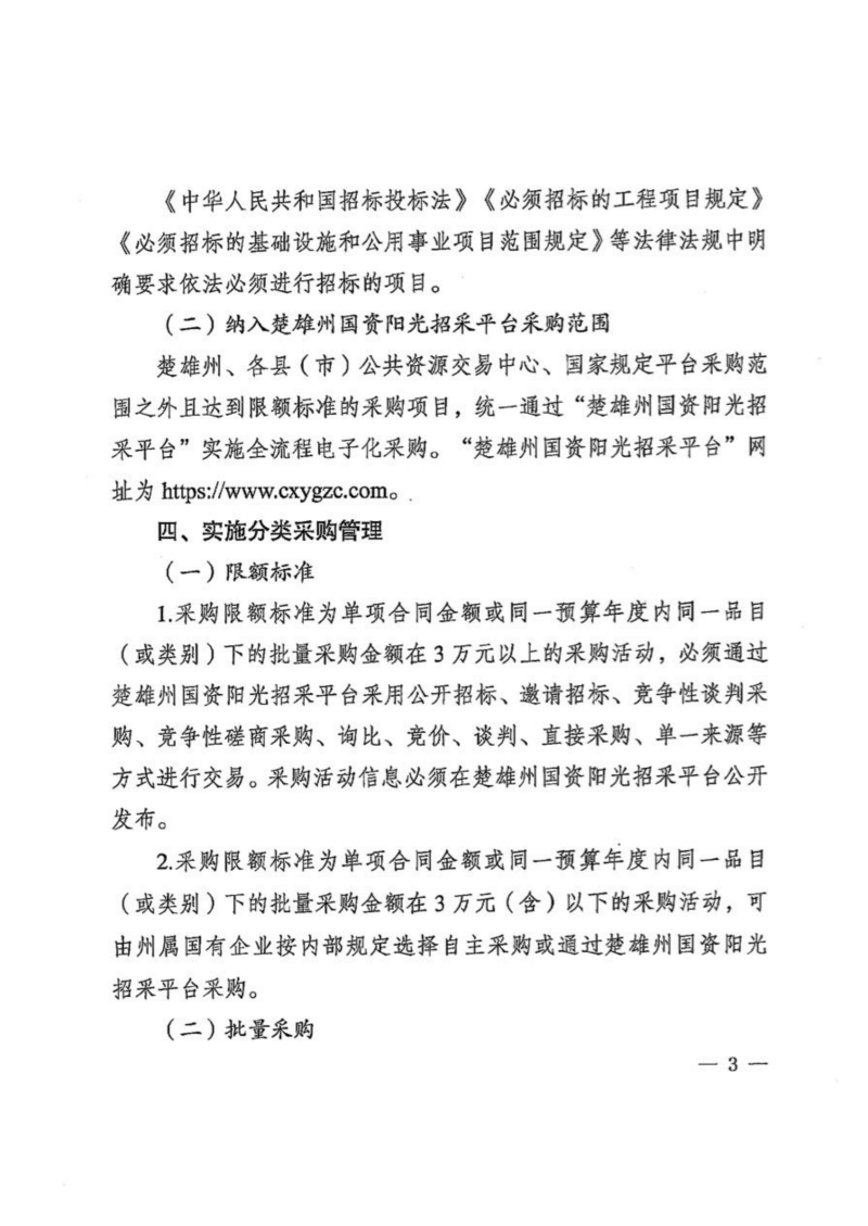 楚国资〔2025〕71号关于印发《楚雄州国资委关于规范州属国有企业采购管理工作实施细则(试行)》《楚雄州国资阳光招采平台当事人不良行为管理规则(试行)》的通知